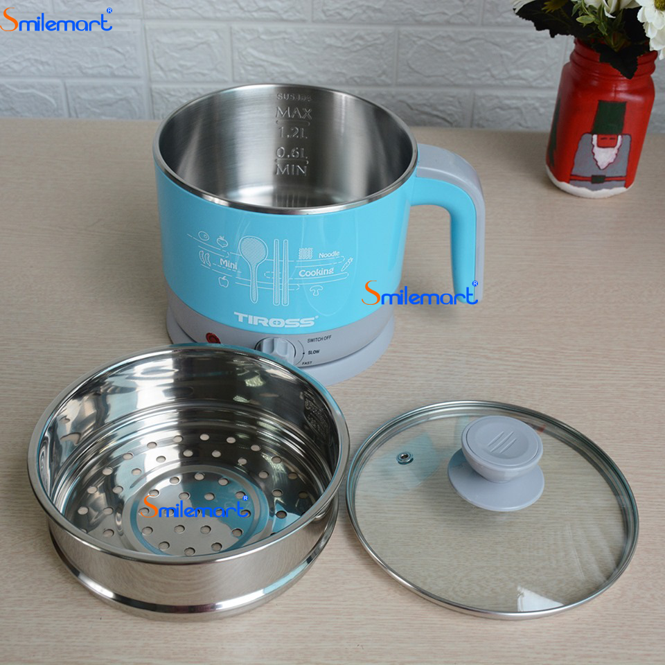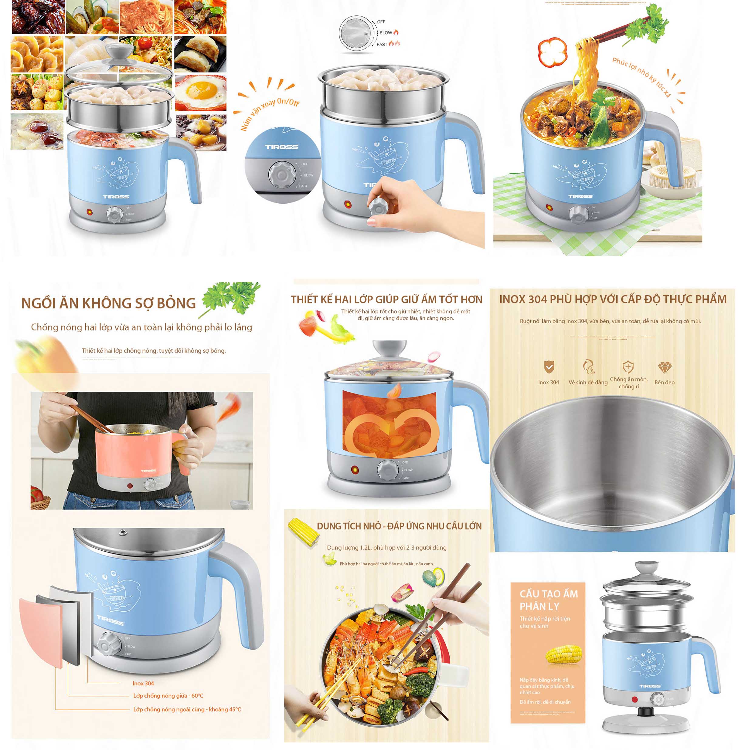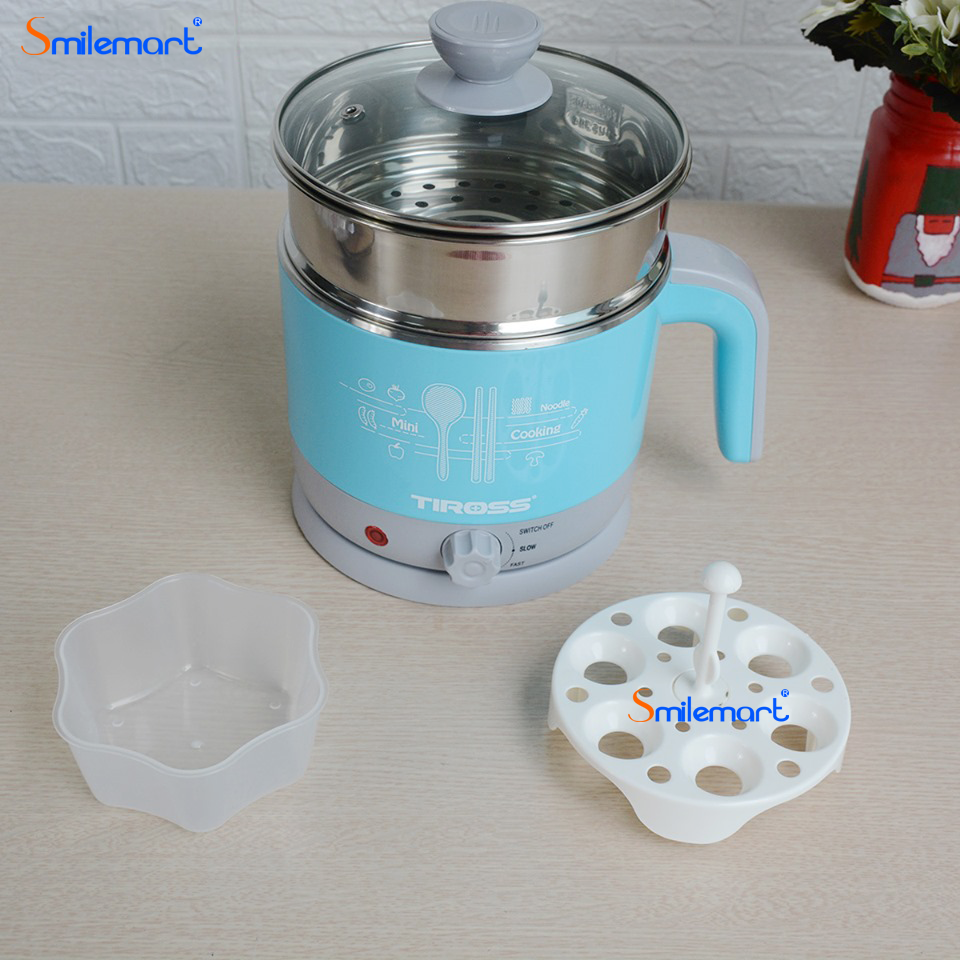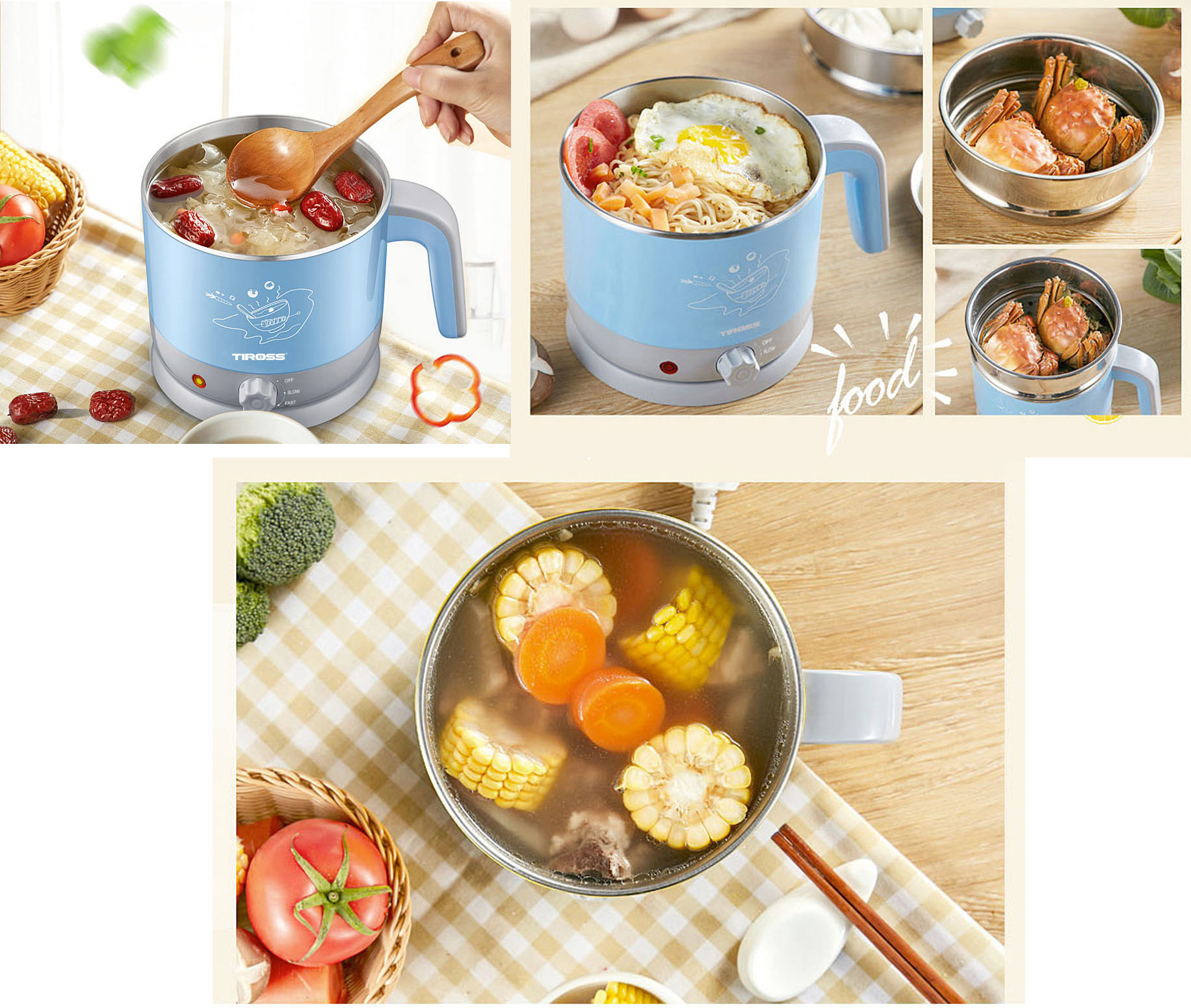 Ấm nấu đa năng Tiross TS1366 được thiết kế tiện lợi, giúp nấu nhiều món ăn ngon như: hâm, hấp, hầm, luộc, pha mì tôm, nấu nước sôi cho những người hằng ngày có công việc bận rộn ở văn phòng.