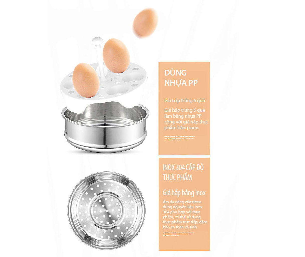 Với chất liệu inox an toàn, sản phẩm đảm bảo tiêu chuẩn về an toàn sức khỏe. Phần ruột ấm được làm từ chất liệu inox 304, phần giá hấp trứng làm bằng nhựa PP không chỉ phù hợp với mọi loại thực phẩm mà còn mang tới độ an toàn cao khi sử dụng. Với công nghệ chống nóng 2 lớp: Lớp inox trong cùng, tiếp đó là lớp chống nóng giữa (khoảng 60 độ) và sau cùng là lớp chống nóng ngoài (khoảng 45 độ), nắp kính chịu nhiệt, mặt kính chịu được va đập. Đặc biệt, với thiết kế tiện lợi, bạn có thể quấn dây gọn gàng vào trong.