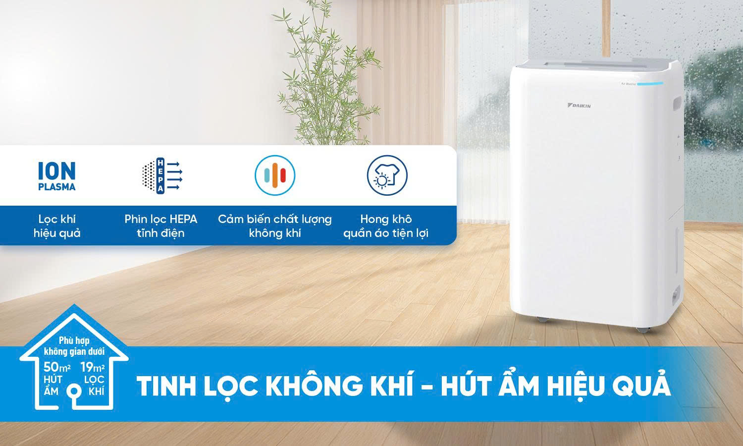 Máy hút ẩm và lọc không khí Daikin JPF12AV2 là một model mới, tích hợp cả hai chức năng quan trọng: hút ẩm, lọc không khí, cùng với các công nghệ lọc khí tiên tiến Ion Plasma, mang đến giải pháp toàn diện cho chất lượng không khí trong nhà. Daikin JPF12AV2 là một thiết bị gia dụng đa năng, kết hợp lợi ích của máy hút ẩm (giúp cân bằng độ ẩm, chống nồm ẩm, nấm mốc, bảo vệ thiết bị điện tử) và máy lọc không khí (làm sạch bụi mịn, vi khuẩn, virus, khử mùi hôi) với công nghệ lọc tiên tiến của Daikin rất hữu ích trong những ngày trời nồm ẩm ướt, giúp bảo vệ đồ đạc và sức khỏe
