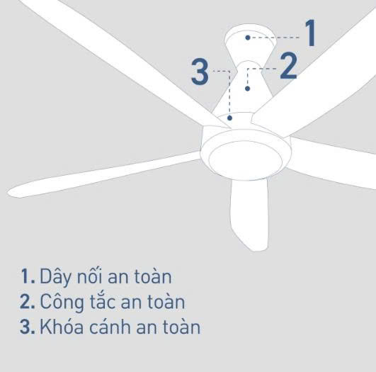 An toàn luôn là yếu tố được đặt lên hàng đầu. Quạt F-60GDS-B được trang bị 3 cấp độ an toàn, bao gồm khóa cánh an toàn, dây an toàn và công tắc an toàn, đảm bảo an tâm tuyệt đối cho người sử dụng, đặc biệt là gia đình có trẻ nhỏ.