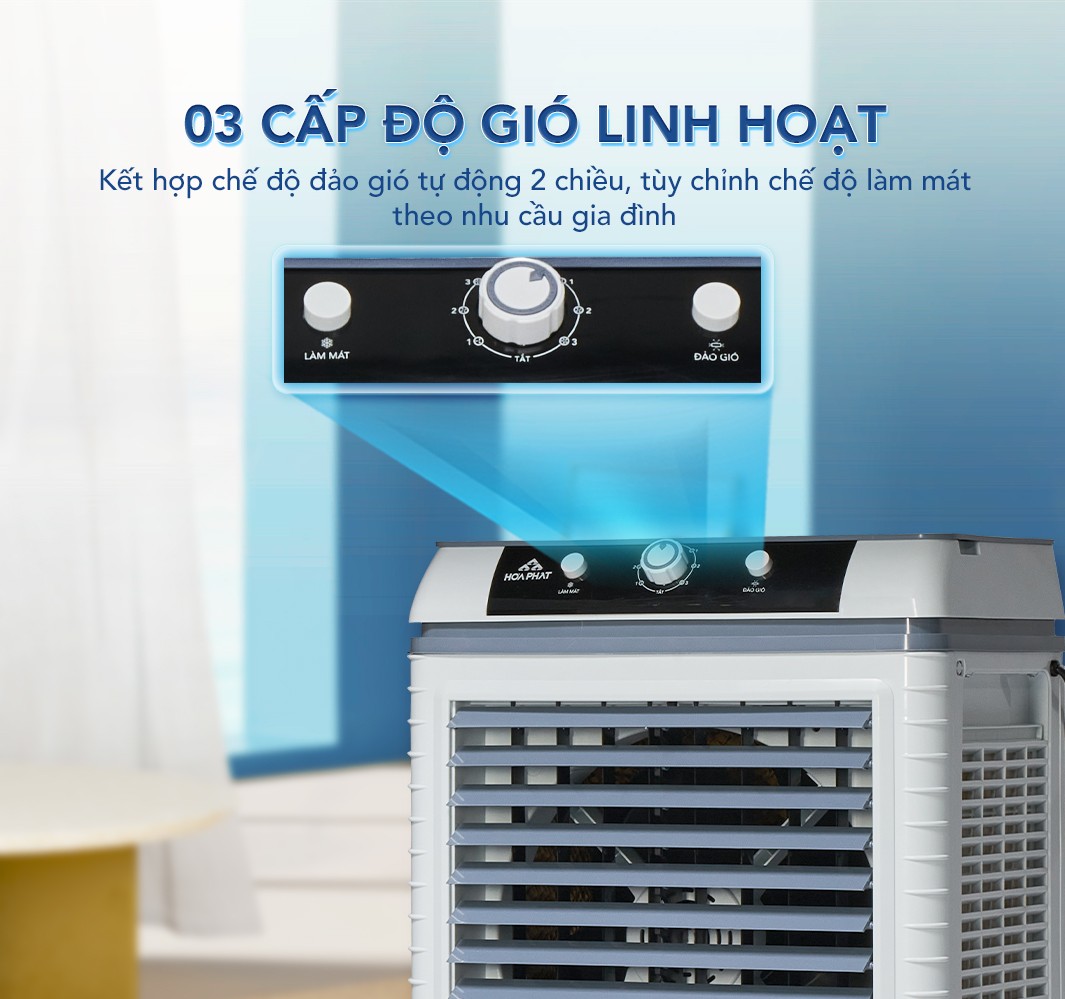 3 tốc độ gió bao gồm từ thấp – trung bình – cao cho bạn tùy chỉnh theo nhu cầu sử dụng. Ngoài ra chế độ đảo gió tự động 2 chiều trái – phải giúp làm mát đều đặn khắp phòng