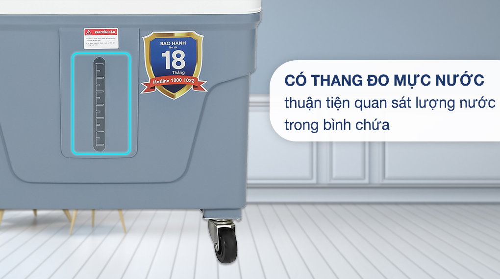 - Thiết kế có mức chia thang đo mực nước giúp bạn dễ quan sát khi đổ nước vào bình chứa và tiện theo dõi lượng nước trong bình chứa.