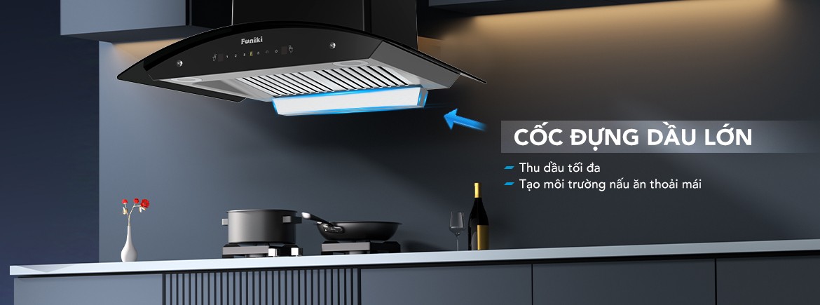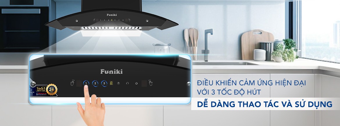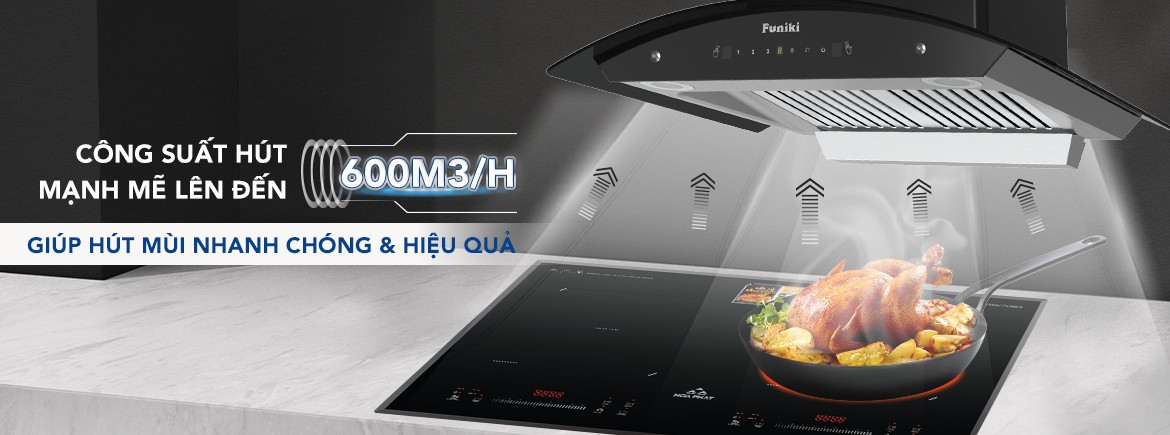Sản phẩm máy hút mùi Funiki là thiết bị hút mùi hiện đại và tiện lợi được sử dụng trong nhà bếp với công suất mạnh mẽ và ống khói lớn giúp hút nhanh, loại bỏ hoàn toàn các hạt bụi và hơi dầu mỡ, khử mùi hiệu quả khi nấu nướng, giúp căn bếp không bị ám mùi và bám dầu mỡ, cải thiện không khí và môi trường nấu nướng.