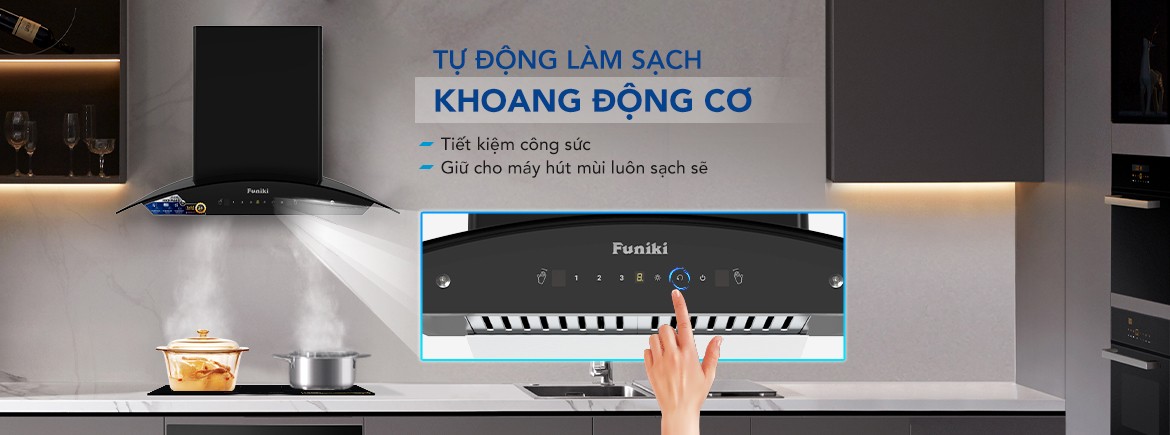 Chức năng tự động làm sạch bằng nhiệt giúp tiết kiệm công sức và giữ cho máy hút mùi luôn sạch sẽ, loại bỏ dầu chỉ bằng một lần chạm.