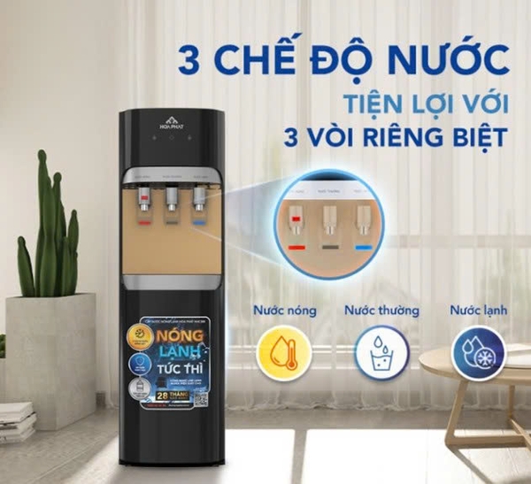 Cây nước nóng lạnh Hoà Phát HHC388 có tối đa lên tới 3 chế độ nước “Nóng – Nguội – Lạnh” với 3 vòi riêng biệt, đa công năng phù hợp với nhiều nhu cầu sử dụng như nước nóng pha trà hay cà phê, pha mì tôm, nước lạnh giải khát, nước nguội uống ngay,… Đây là phiên bản mới và hiện đại nhất trên thị trường hiện nay.