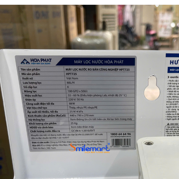 Với 10 cấp lọc mạnh mẽ như trên, nước sau lọc từ HPT725 đạt chuẩn quốc gia về nước uống trực tiếp không cần đun nấu theo tiêu chuẩn của Bộ Y Tế QCVN 6-1:2010/BYT.