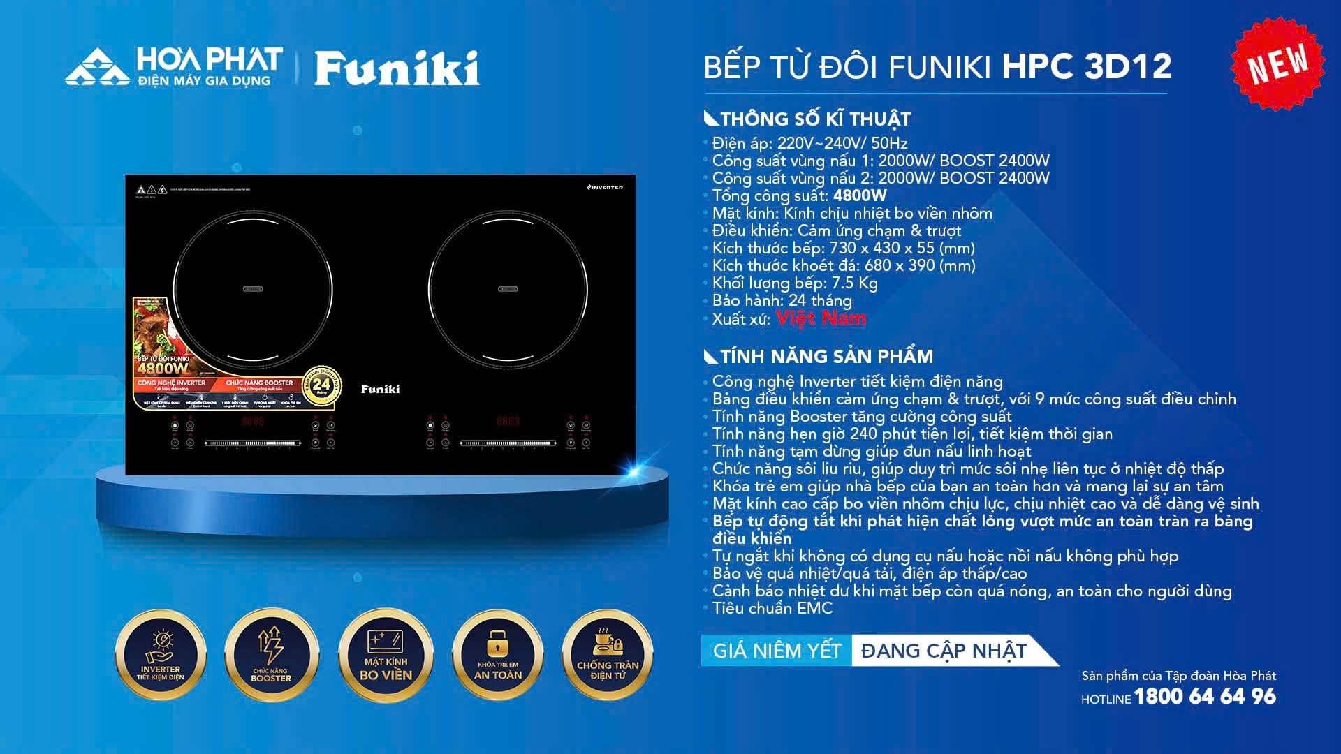 Với thiết kế tinh tế, công suất mạnh mẽ, công nghệ tiết kiệm điện Inverter cùng hàng loạt tính năng an toàn hiện đại, Bếp từ đôi Funiki HPC 3D12 chắc chắn sẽ là lựa chọn lý tưởng cho những gia đình mong muốn một chiếc bếp vừa đẹp mắt, vừa tiện lợi lại bền bỉ theo thời gian.
