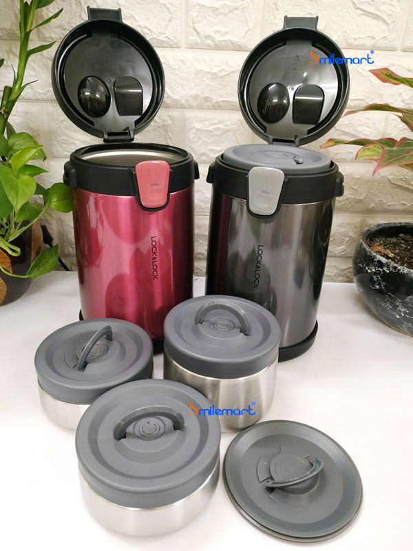 - Bộ hộp cơm giữ nhiệt Easy Take Lunch Box Lock&Lock LHC8034 có thân bình được làm từ thép không rỉ cao cấp. Chất liệu này không bị ăn mòn, không thôi nhiễm chất độc vào thực phẩm, cực kỳ an toàn cho sức khỏe của gia đình bạn.