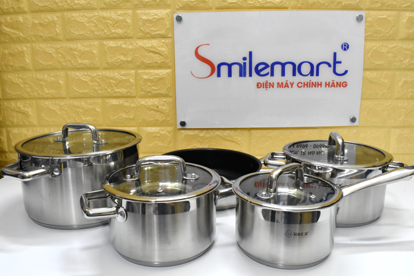 Bộ nồi inox Arber AN05I có đầy đủ mọi kích thước và chảo giúp các bà nội trợ nấu nướng dễ dàng. Bạn không cần phải mua thêm các sản phẩm khác cho gia đình vừa tiết kiệm lại đồng bộ.