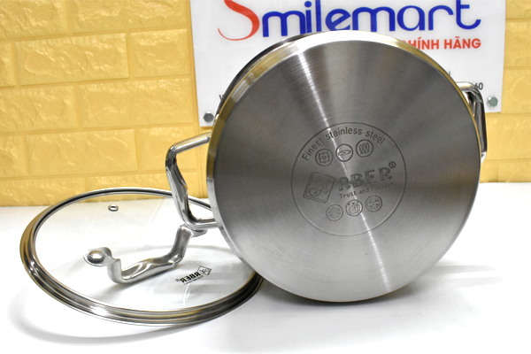 Bộ nồi inox Arber AN05I dày và chắc chắn. Đáy inox 3 lớp được bảo hành đến 5 năm. Nắp kính trong suốt kháng vỡ giúp bạn nhìn thấy thực phẩm bên trong nồi khi đang nấu. Tay nắm, quai dày và chắc chắn. Thiết kế đặc biệt giúp chống bỏng hiệu quả. Chảo inox được phủ men chống dính cao cấp an toàn với sức khỏe. Bạn đang muốn mua cho gia đình bộ nồi chảo để nấu nướng thì đây là một trong những lựa chọn tốt giá rẻ.