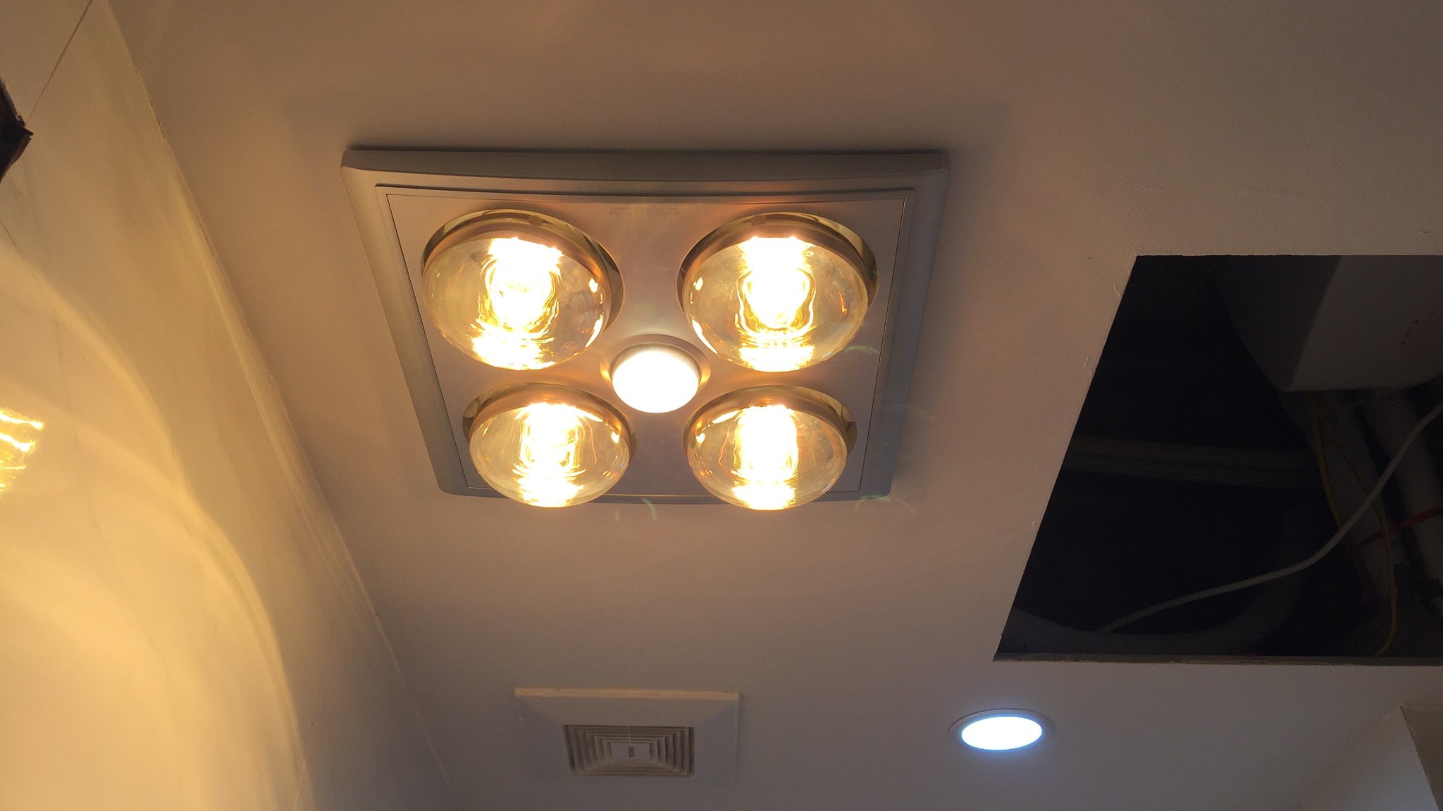 - Khung đèn sưởi trong nhà tắm, cần treo cao tránh nước từ vòi hoa sen bắn vào