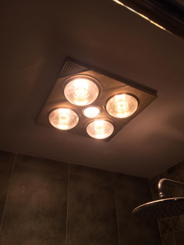 Công tắc điều khiển: 3 công tắc điều khiển. Công tắc 1 cho đèn chiếu sáng. Công tắc 2 cho 2 bóng sưởi (sử dụng khi trời chưa quá lạnh). Công tắc 3 cho 2 bóng sưởi còn lại (sử dụng cả 4 bóng sưởi khi trời rất rét ).