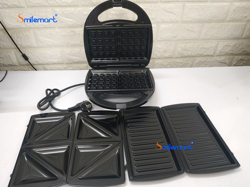 - Máy nướng 3 trong 1: Với 3 loại vỉ nướng đi kèm, bạn có thể làm các loại bánh khác nhau (bánh sandwich, bánh waffle, bánh quy, bánh trứng,...) hay nướng thức ăn ngay trên vỉ.