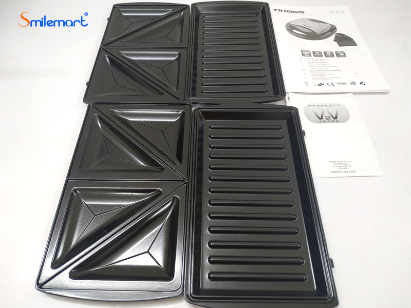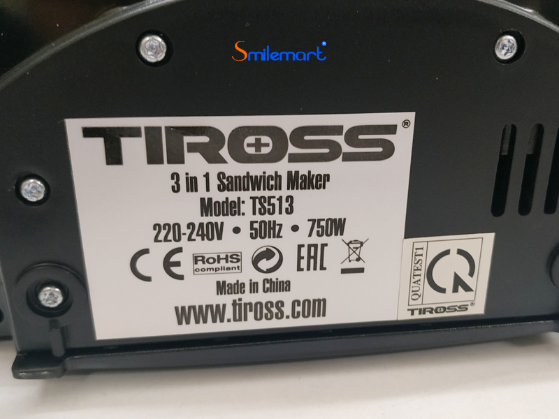 Siêu thị điện máy Smilemart là đại lý phân phối chính thức sản phẩm Máy kẹp bánh mỳ Sandwich Tiross TS-513 với giá cạnh tranh nhất, chất lượng dịch vụ tốt nhất. Máy kẹp bánh mỳ Tiross TS513 đi kèm 3 loại vỉ ( vỉ bánh sandwich, vỉ bánh Waffle và vỉ nướng) đem đến cho bạn chiếc máy nướng đa chức năng. Chỉ cần sử dụng nút gạt trên nắp, bạn có thể thay thế vỉ nướng dễ dàng. Máy có phương thức hoạt động đơn giản và hệ thống đèn báo trạng thái sử dụng, cho phép bạn theo dõi quá trình nướng bánh mà không phải mở nắp thiết bị. Với máy nướng bánh 3 trong 1 Tiross TS513, bạn dễ dàng tự tay chuẩn bị nhiều món ăn ngon cho bữa sáng đa dạng mà vẫn đầy đủ chất dinh dưỡng.