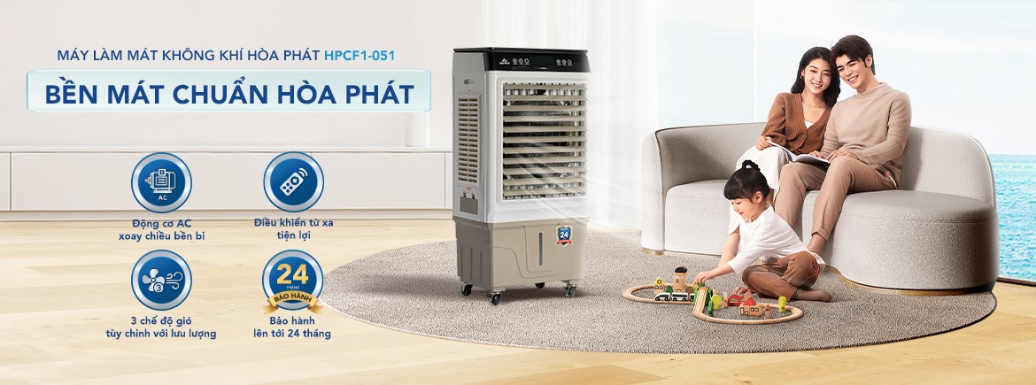 Đổi hàng miễn phí sau 7 ngày mua Hòa Phát HPCF1-051 là thiết bị làm mát hoạt động dựa trên nguyên lý bay hơi của nước thông qua tấm làm mát, từ đó giúp làm dịu hơi nóng đồng thời thổi ra luồng gió mát tự nhiên, tạo cảm giác dễ chịu, thoải mái cho người dùng.