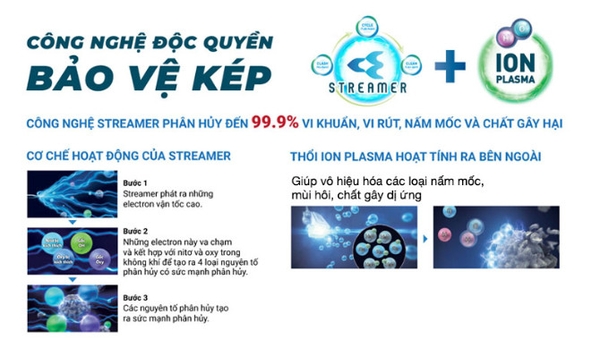Khả năng lọc khí tối ưu nhờ công nghệ độc quyền bảo vệ kép Streamer (3C) và Ion Plasma
