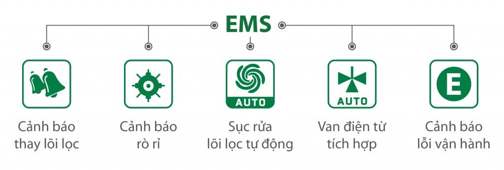 Sục rửa lõi lọc tự động: Khi nước đi qua màng loc, tạp chất và vi khuẩn được giữ lại trên bề mặt màng, vì vậy việc thường xuyên được sục rửa sẽ đảm bảo rằng hiệu suất màng lọc đạt được kết quả tốt nhất, nguồn nước tinh khiết nhất.