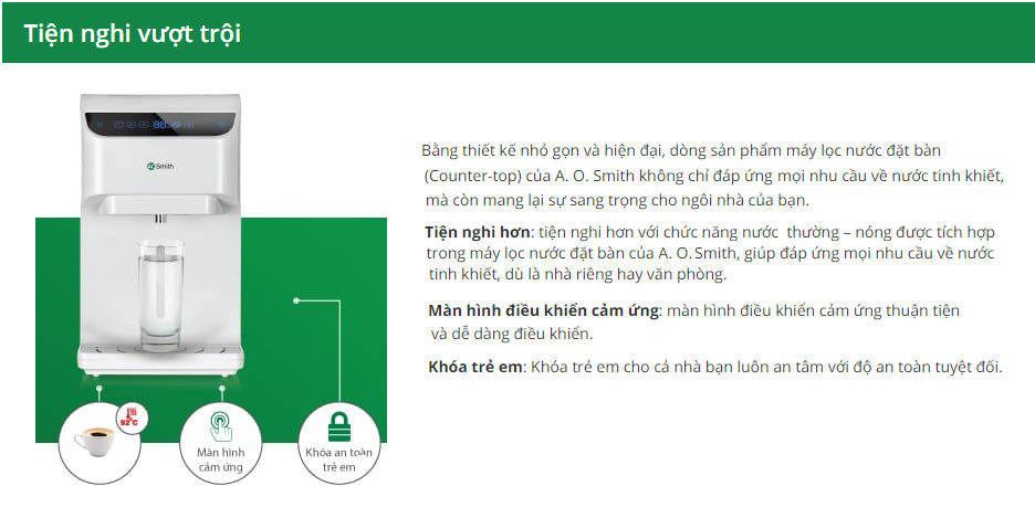 - Đặc biệt với màng lọc RO – Side Stream, A. O. Smith mang đến “Giải pháp tiết kiệm toàn diện” cho người sử dụng.