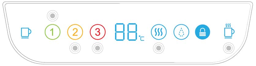 Cảnh báo thay thế lõi lọc: Căn cứ vào thực tế sử dụng – tiêu dùng nước tinh khiết, biểu tượng lõi lọc trên màn hình là màu xanh tức là lõi lọc hoạt động tốt, khi gần đến thời hạn thay thế lõi lọc thì trên màn hình của hệ thống sẽ hiển thị màu vàng để báo hiệu lõi lọc sắp phải thay thế. Khi biểu tượng là màu đỏ thì lõi lọc cần được thay thế ngay lập tức để đảm bảo chất lượng nước đầu ra tốt nhất.