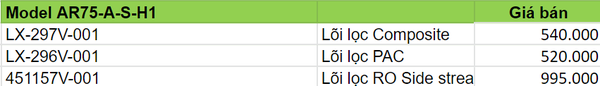 Bảng giá Lõi lọc của máy Máy lọc nước AO Smith