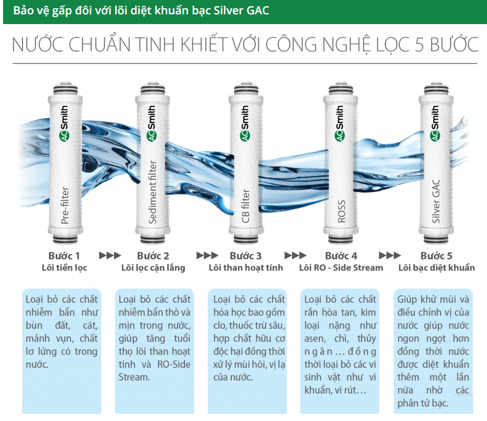 - Đặc biệt với màng lọc RO – Side Stream, A. O. Smith mang đến “Giải pháp tiết kiệm toàn diện” cho người sử dụng.