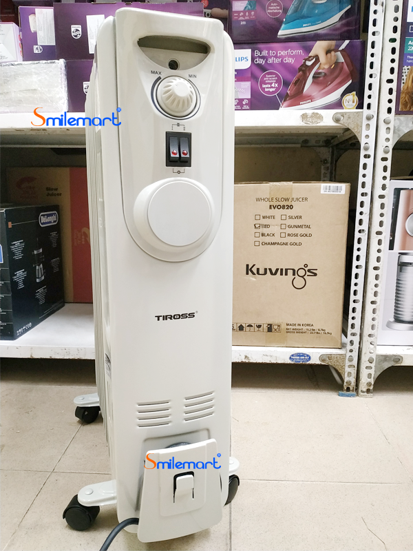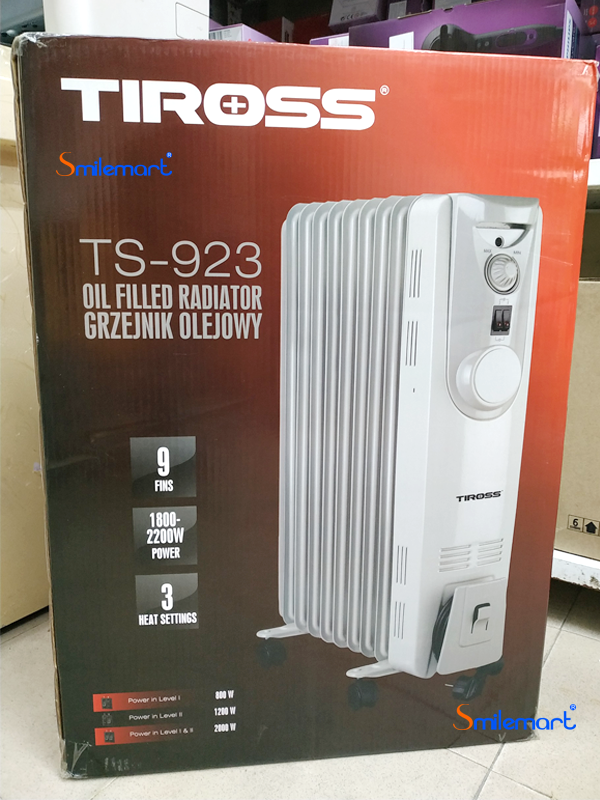 Đổi hàng miễn phí sau 7 ngày mua Siêu thị điện máy Smilemart là đại lý phân phối chính thức sản phẩm Lò sưởi dầu Tiross TS923 với giá cạnh tranh nhất, chất lượng dịch vụ tốt nhất. Máy sưởi dầu hiện đại cho bạn cảm giác ấm áp trong mùa đông mà không sợ bị khô da hay cảm giác ấm nóng lan tỏa không đều trên cơ thể. Không như các loại máy sưởi khác sử dụng sợi đốt hay đèn halogen, máy sưởi dầu tỏa ra hơi ấm xuất phát từ lượng dầu có trong máy được đốt nóng. Chính vì thế, máy sưởi dầu được các bà mẹ mới sinh ưa chuộng nhất bởi ngoài chức năng sưởi ấm, máy sưởi dầu còn thay thế chiếc bàn là làm khô tã hay khăn của bé sơ sinh một cách nhanh chóng.