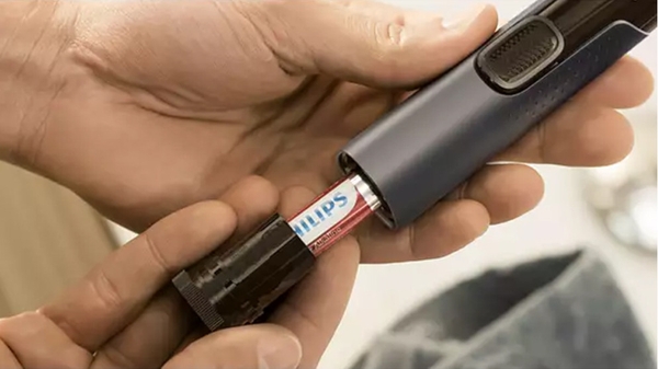 Philips NT3650/16 chạy bằng một pin AA đi kèm trong hộp, vì vậy máy của bạn có thể sử dụng ngay. Để thay pin, hãy mở thiết bị bằng cách xoay nhẹ phần dưới cùng sang trái. Kéo phần dưới về phía mình để đến ngăn chứa pin.