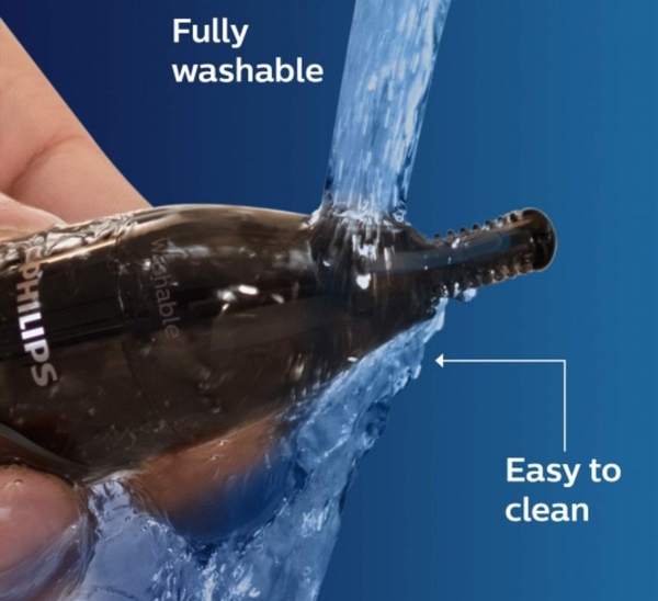 Máy Tỉa Lông Mũi, Tai Và Lông Mày Philips NT3650/16 có khả năng chống nước nên rất dễ vệ sinh: chỉ cần rửa sạch dưới vòi nước.