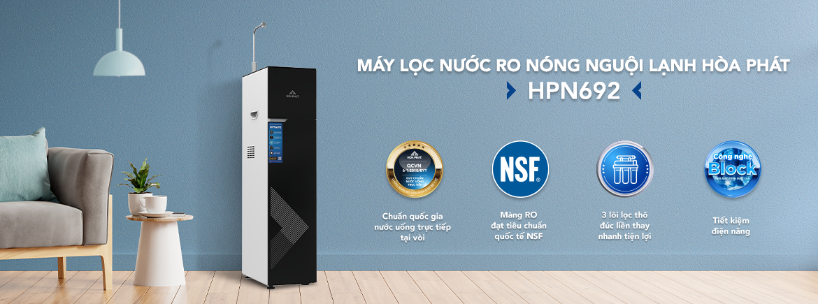 Hòa Phát là thương hiệu Máy lọc nước duy nhất đạt chứng nhận thương hiệu quốc gia. Nước sau lọc được lấy từ máy lọc nước Hòa Phát HPN692 đã đạt tiêu chuẩn kỹ thuật quốc gia về nước khoáng thiên nhiên và nước uống đóng chai và theo QCVN 6-1:2010/BYT của Bộ y tế. Do đó, bạn có thể lấy nước tại vòi và uống trực tiếp, không cần đun sôi, đảm bảo an toàn tuyệt đối cho sức khỏe người sử dụng, tiết kiệm thời gian và công sức.