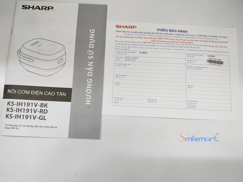 Thông sô kỹ thuật nồi cơm điện Sharp KS-IH191V-BK 1.8L cao tần