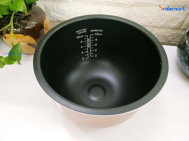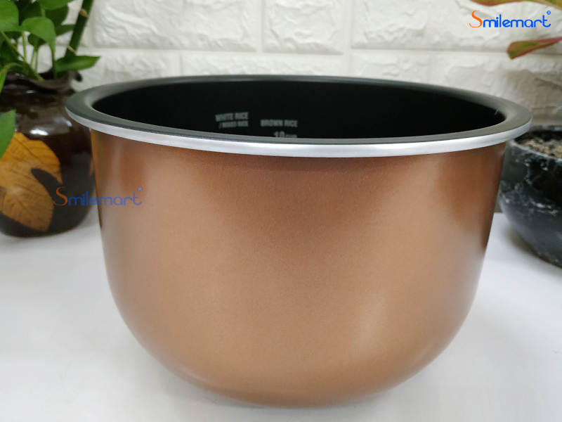 Lòng nồi dày 7 lớp giúp truyền nhiệt vào tận lõi của hạt gạo, giúp cơm chín đều, hạt cơm mềm dẻo và thơm ngon. Gồm có lớp phủ chống dính, lớp phủ, lớp nhôm, lớp thép không gỉ, lớp phủ chịu nhiệt, chống ăn mòn và silicone chống mài mòn và lớp ngoài phủ chịu nhiệt, chống ăn mòn và silicone chống mài mòn.
