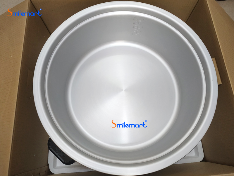 Bên cạnh đó, lòng nồi được làm bằng nhôm cao cấp chắc chắn và bền vững, truyền nhiệt tốt nấu cơm nhanh, giữ nhiệt lâu cho chất lượng cơm thơm ngon. Nắp làm bằng thép không gỉ cho độ bền cao.