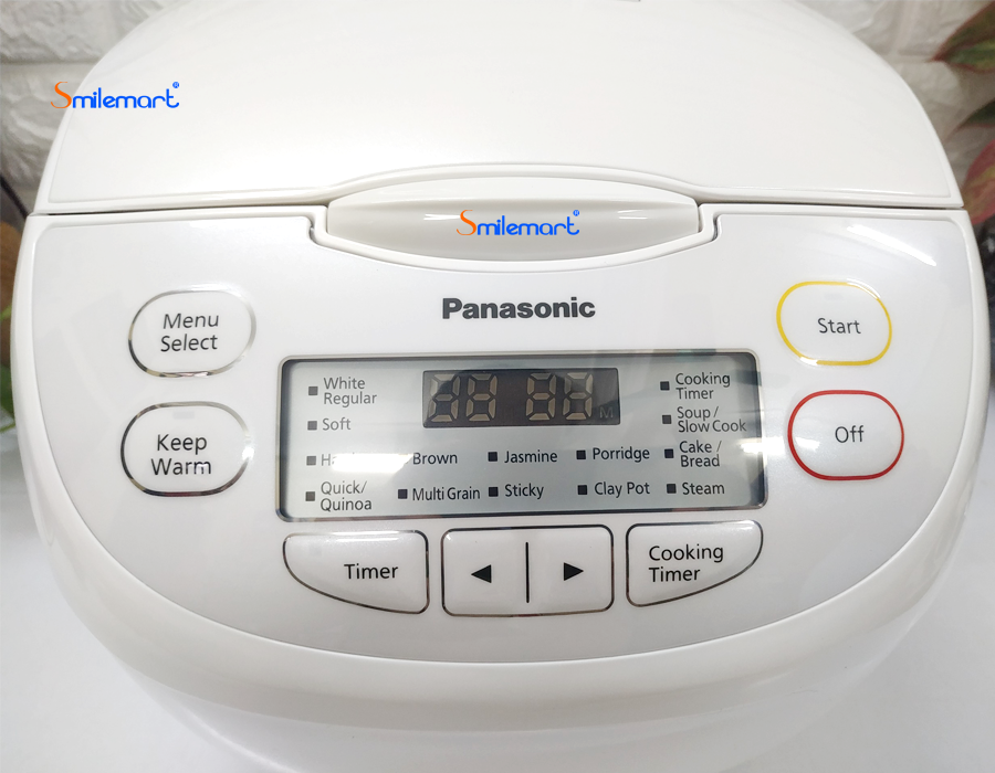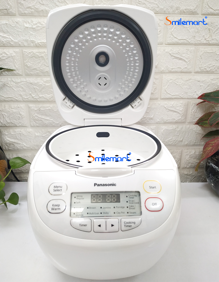 Nồi cơm điện tử Panasonic kiểu dáng mềm mại, màu trắng trang nhã, đẹp mắt trong không gian bếp hiện đại