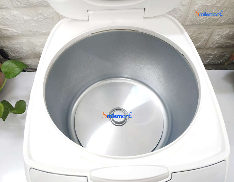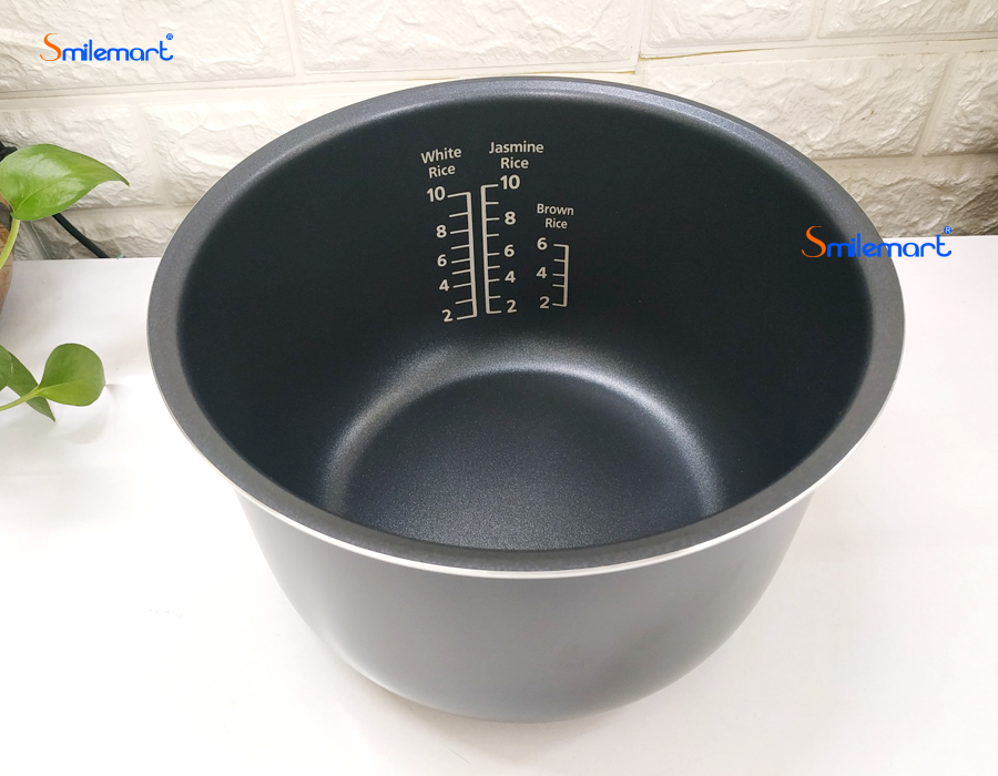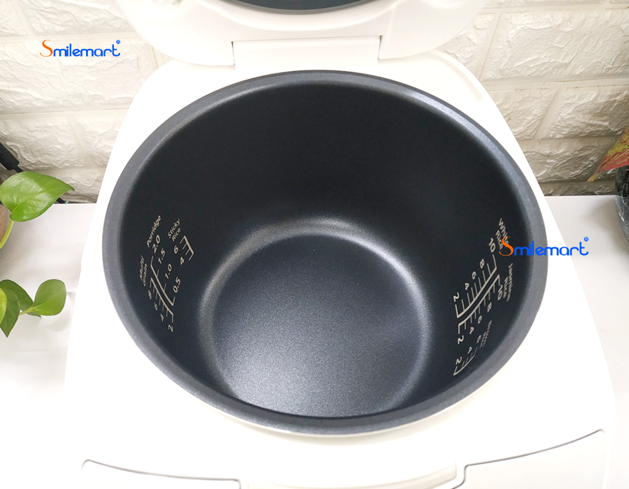 Lòng nồi hợp kim nhôm tráng men chống dính dày 2.2 mm nấu cơm ngon, chống móp méo tốt, giữ nhiệt lâu, lớp chống dính Ceramic cao cấp, nấu an toàn, dễ vệ sinh