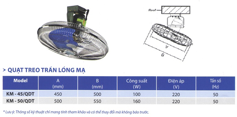 Thông số kỹ thuật các dòng quạt cùng loại: