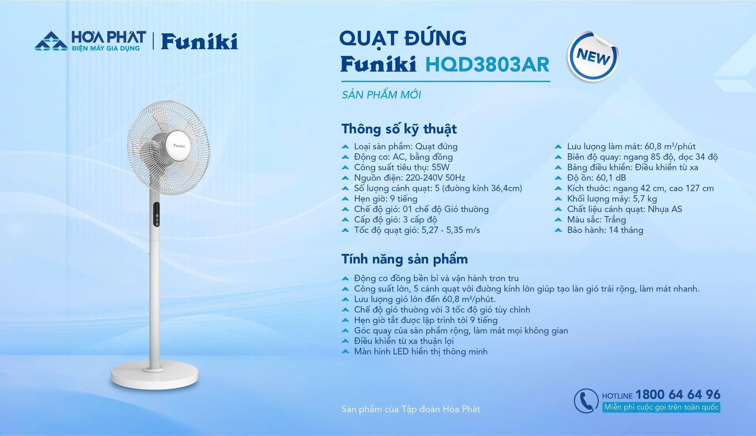 Đổi hàng miễn phí sau 7 ngày mua Quạt đứng Funiki HQD3803AR