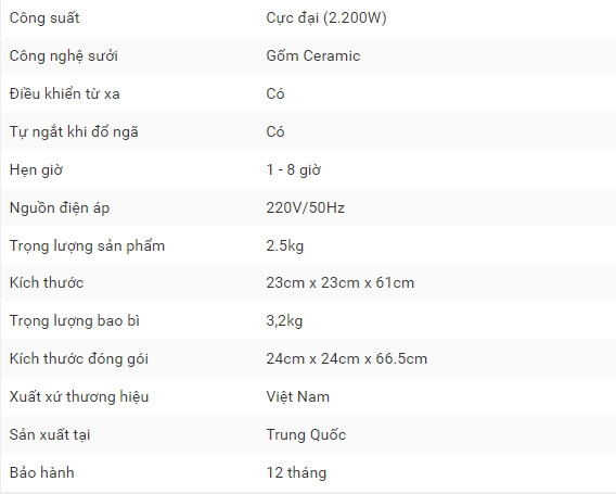 – Quạt sưởi có công suất lớn lên tới 2.200W cho thời gian làm nóng nhanh chóng chỉ sau 5 giây, không gây mùi khó chịu.